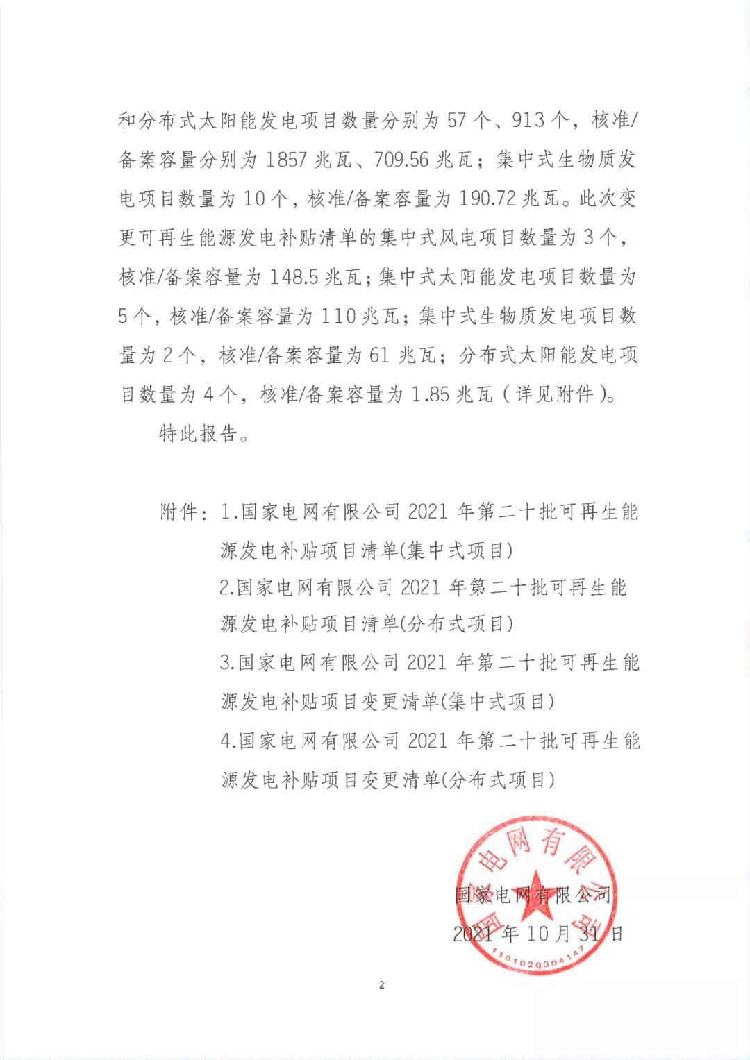 10月31日,國網(wǎng)新能源云平臺公布了2021年第二十批可再生能源發(fā)電補(bǔ)貼項(xiàng)目清單。