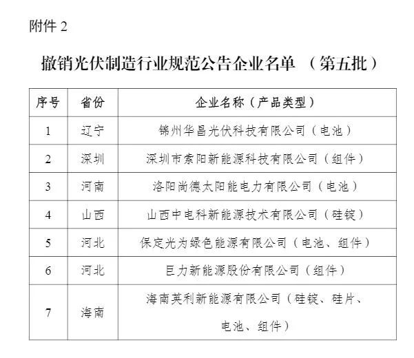 2.撤銷(xiāo)光伏制造行業(yè)規(guī)范公告企業(yè)名單(第五批)
