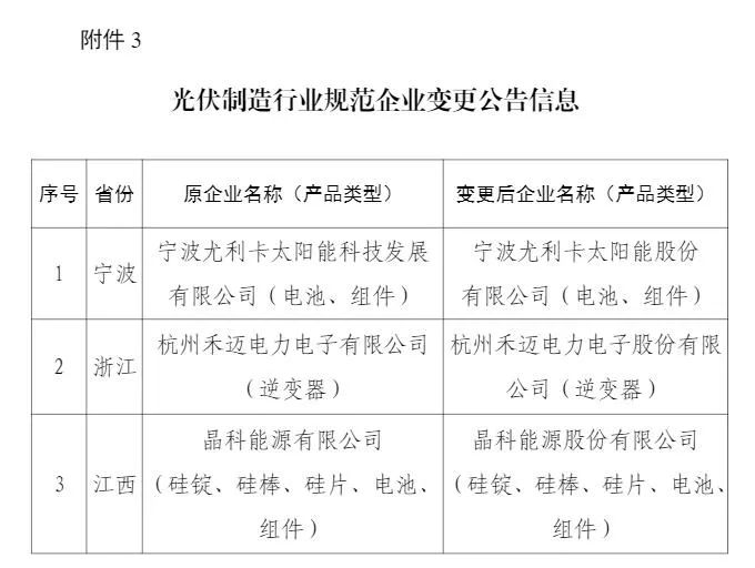 3.光伏制造行業(yè)規(guī)范企業(yè)變更公告信息