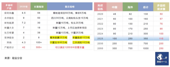 硅業(yè)分會已就投資過熱做出警示,硅料短期供應持續(xù)緊張,未來2年~3年產(chǎn)能將持續(xù)釋放,中長期或出現(xiàn)供大于求局面。目前硅料企業(yè)宣布的規(guī)劃產(chǎn)能已超出300萬噸,可以滿足1200GW的裝機需求?紤]到龐大的在建產(chǎn)能,硅料企業(yè)的好日子很可能只剩下2022年。
