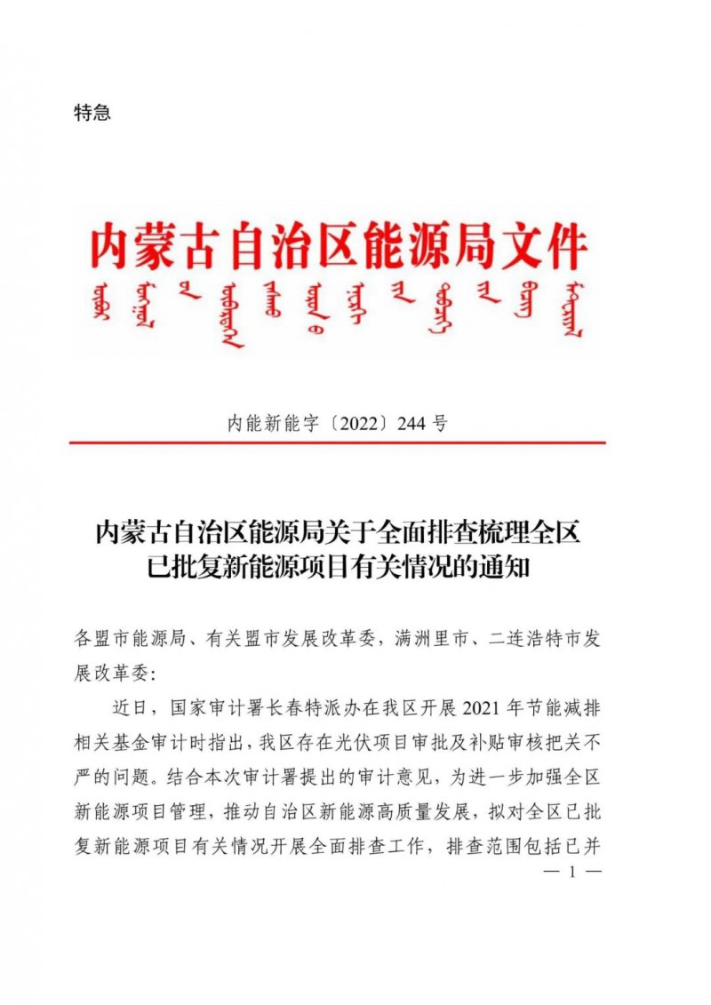 緊急通知!內(nèi)蒙古全面排查梳理已批復(fù)新能源項目