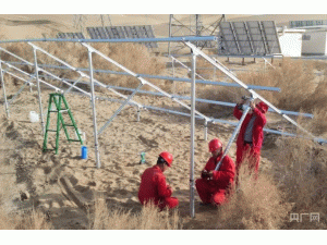 從1月18日人員入場(chǎng)平整場(chǎng)地開始,施工人員每天都自帶午餐加快施工進(jìn)度。3月初太陽能設(shè)備到場(chǎng)后,施工人員按照施工工序全面鋪開。截至目前,86個(gè)螺旋樁基礎(chǔ)已全部完成,安裝支架30個(gè),安裝太陽能板4個(gè)。