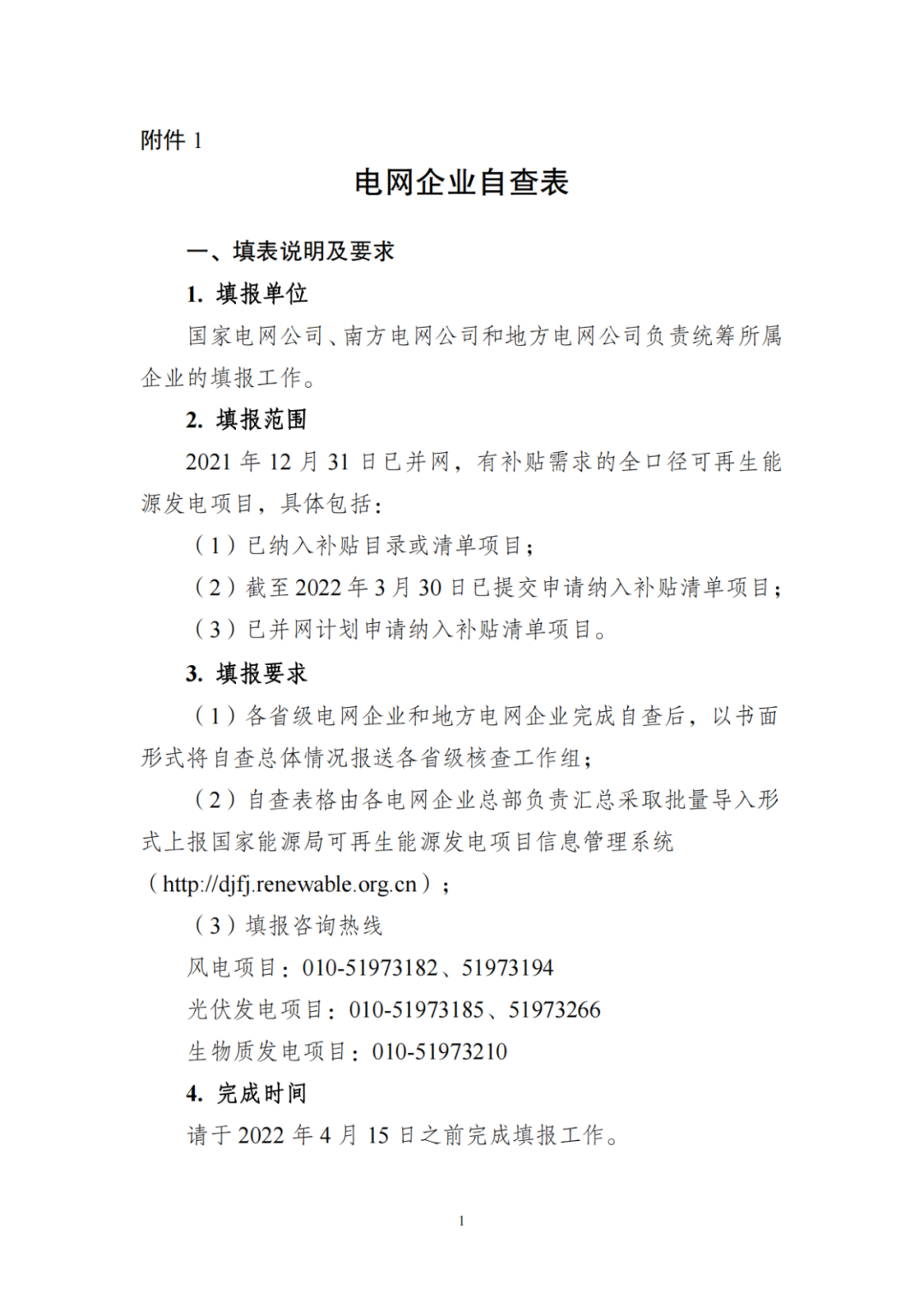 電網(wǎng)企業(yè)自查范圍為截止到2021年12月31日已并網(wǎng),有補(bǔ)貼需求的全口徑可再生能源發(fā)電項目。