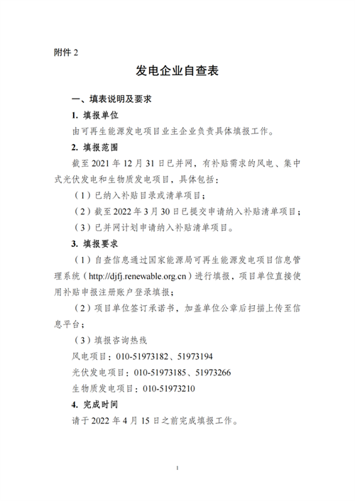 發(fā)電企業(yè)自查范圍為截止到2021年12月31日已并網(wǎng),有 補(bǔ)貼需求的風(fēng)電、集中式光伏發(fā)電和生物質(zhì)發(fā)電項目。