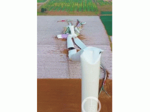 4月11日晚10時許,河南省安陽市內(nèi)黃縣馬上鄉(xiāng)一風(fēng)力發(fā)電機(jī)倒塌。