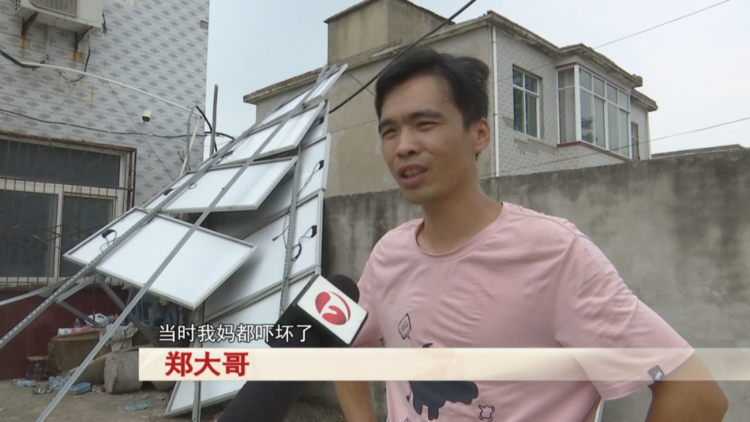 淮南鳳臺(tái)縣的鄭大哥家樓頂上,安裝了一塊光伏發(fā)電板。光伏板發(fā)的電不僅能夠自用,多余的電還可以賣(mài)錢(qián)。誰(shuí)知道,今年6月13日,因?yàn)楣未箫L(fēng),這塊光伏發(fā)電板竟然整個(gè)掉了下來(lái),把鄭大哥停在樓下的車(chē)給砸了。