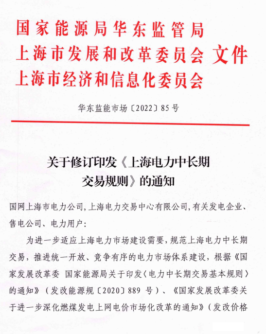 《上海電力中長(zhǎng)期交易規(guī)則》修訂印發(fā)