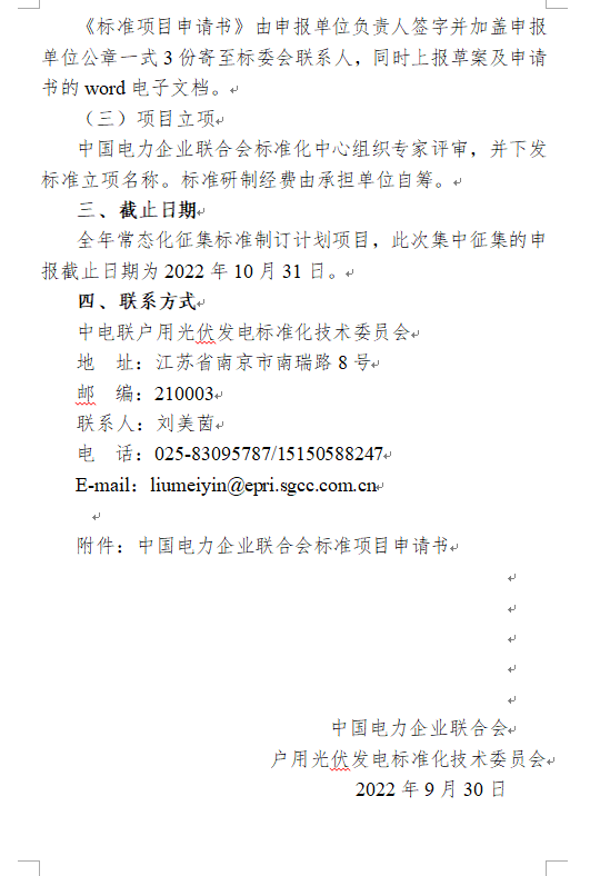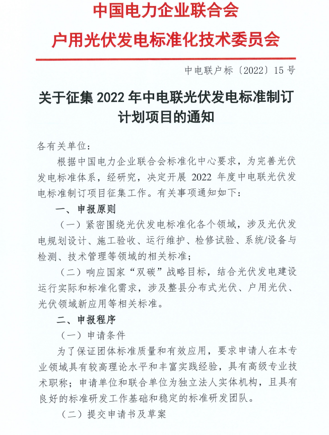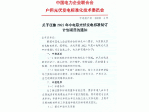 中電聯(lián):關(guān)于征集2022年光伏發(fā)電標(biāo)準(zhǔn)制定計劃項目的通知