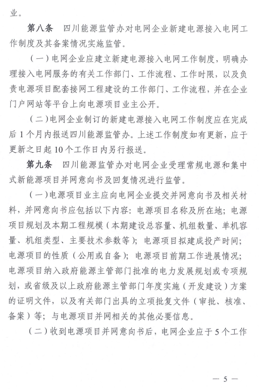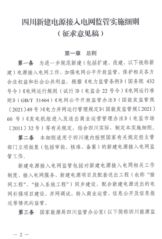 《四川新建電源接入電網(wǎng)監(jiān)管實施細則》公開征求意見