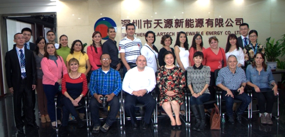 哥倫比亞UPB皇家大學(xué)學(xué)術(shù)交流團(tuán)此行目的主要是親臨天源公司參觀考察,并與天源新能源和清華大學(xué)深圳研究生院進(jìn)行光伏揚(yáng)水技術(shù)的學(xué)術(shù)交流。據(jù)了解,今年8月,由深圳市天源新能源公司和清華大學(xué)深圳研究生院聯(lián)合申報(bào)的“光伏揚(yáng)水系統(tǒng)技術(shù)”榮獲聯(lián)合國(guó)“全球人居環(huán)境綠色技術(shù)范例獎(jiǎng)”,哥倫比亞UPB皇家大學(xué)正是在今年全球人居環(huán)境論壇上了解天源的“光伏揚(yáng)水系統(tǒng)技術(shù)”,認(rèn)為光伏揚(yáng)水系統(tǒng)技術(shù)節(jié)能環(huán)保,非常適用于解決無(wú)電缺水地區(qū)的灌溉難題,系統(tǒng)無(wú)需架設(shè)電網(wǎng),以蓄水替代蓄電,無(wú)需蓄電池, 無(wú)任何排放,對(duì)全球環(huán)境治理和生態(tài)恢復(fù)具有重要意義。來(lái)訪團(tuán)希望通過(guò)此次實(shí)地考察,與天源和清華大學(xué)針對(duì)光伏揚(yáng)水系統(tǒng)技術(shù)進(jìn)行深入探討和研究,尋求合作契機(jī),并將此技術(shù)在南美洲更好地推廣和應(yīng)用