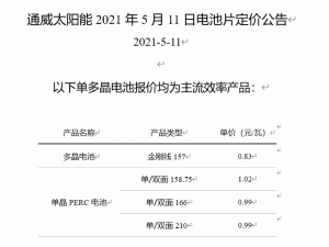 動(dòng)態(tài)| 通威最新電池片報(bào)價(jià)普漲6-7分/瓦