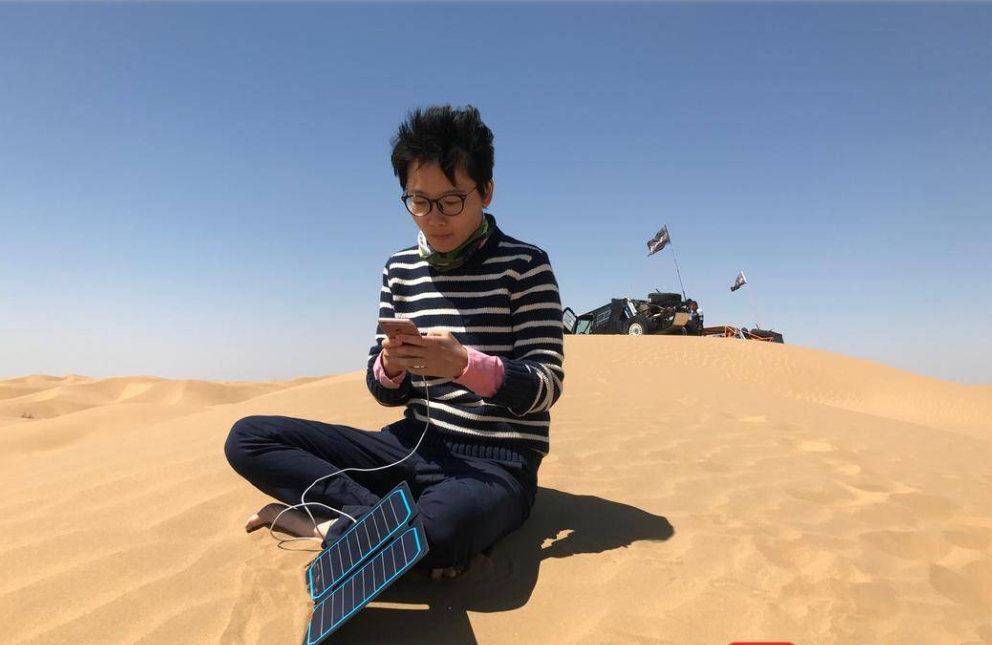 凝聚態(tài)物理學博士李懿是一名85后創(chuàng)業(yè)者。閑暇之余,李懿便奔向戶外,與森林、草地、山川、星空為伴。身處沙漠的李懿,使用便攜式太陽能板為手機充電 “最鐘情那種遠離城市的原生態(tài)露營方式,大家自帶飲用水、自備電源……”李懿很快就發(fā)現(xiàn),郊野之地遠離城市,沒有連接電網(wǎng),取電成了一大難題,唯一的電力來源就是行駛的車輛,“多種電子設(shè)備