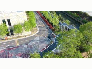 該項(xiàng)目位于山東榮成國和一號仿真國際交流中心內(nèi),是園區(qū)內(nèi)重要的景觀改造與節(jié)能工程子項(xiàng),項(xiàng)目總裝機(jī)容量130kW。光伏連廊延海岸線而建,以會(huì)議中心為起點(diǎn)至國家電投新能源科技館,總長度約500米,從空中俯瞰,猶如一條長龍蜿蜒盤踞。