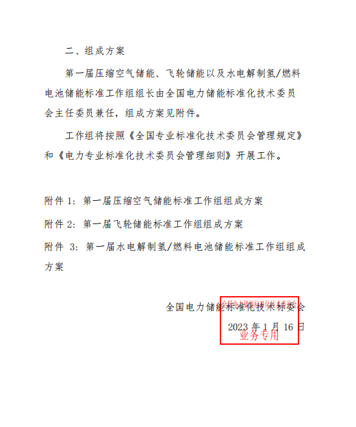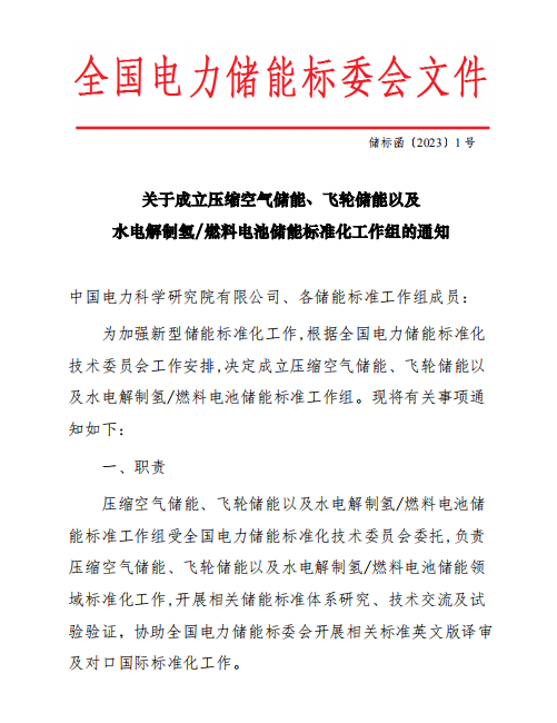 壓縮空氣儲能、飛輪儲能以及水電解制氫/燃料電池儲能標準化工作組負責壓縮空氣儲能、飛輪儲能以及水電解制氫/燃料電池儲能領域標準化工作,開展相關儲能標準體系研究、技術交流及試驗驗證,協(xié)助全國電力儲能標委會開展相關標準英文版譯審及對口國際標準化工作。