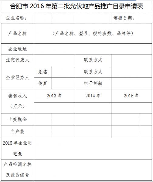 附件:合肥市2016年第二批光伏地產(chǎn)品推廣目錄申請(qǐng)表