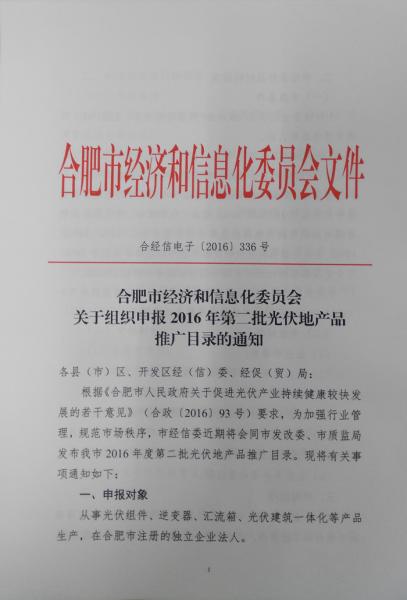 關(guān)于組織申報(bào)2016年第二批光伏地產(chǎn)品推廣目錄的通知