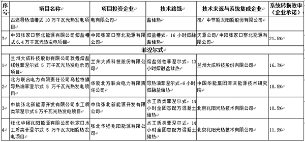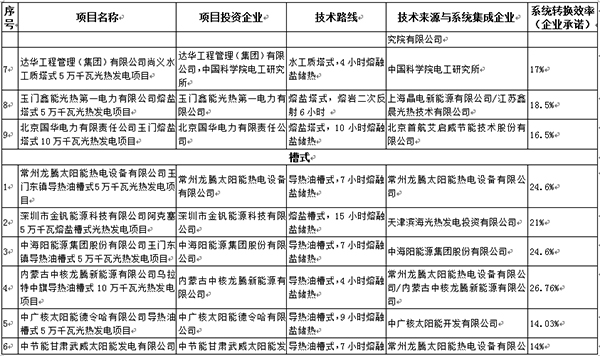 附表:太陽(yáng)能熱發(fā)電示范項(xiàng)目名單