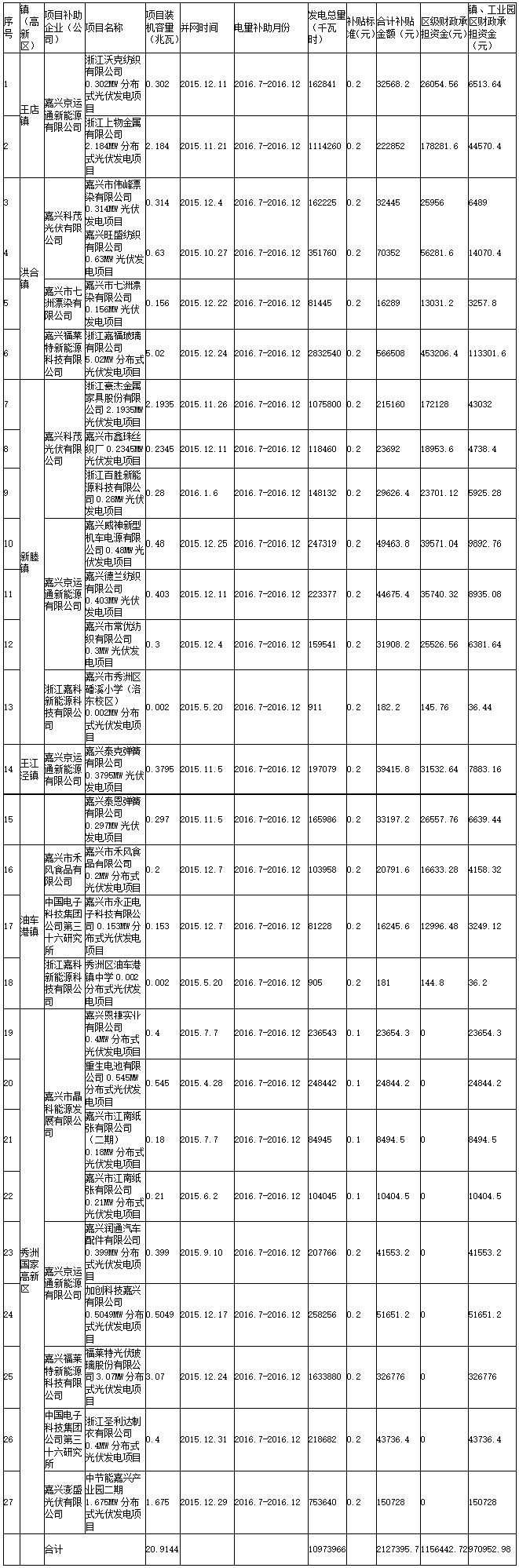 根據(jù)秀洲區(qū)人民政府辦公室《關(guān)于印發(fā)秀洲區(qū)2016年度推進(jìn)光伏發(fā)電應(yīng)用工作實(shí)施意見的通知》(秀洲政辦發(fā)〔2016〕58號)文件精神,2015年度并網(wǎng)發(fā)電分布式光伏發(fā)電項(xiàng)目和2016年并網(wǎng)的戶用光伏發(fā)電項(xiàng)目補(bǔ)助已經(jīng)區(qū)政府常務(wù)會議審議,擬對浙江沃克紡織有限公司0.302MW分布式光伏發(fā)電項(xiàng)目等項(xiàng)目進(jìn)行資金補(bǔ)助,現(xiàn)予以公示