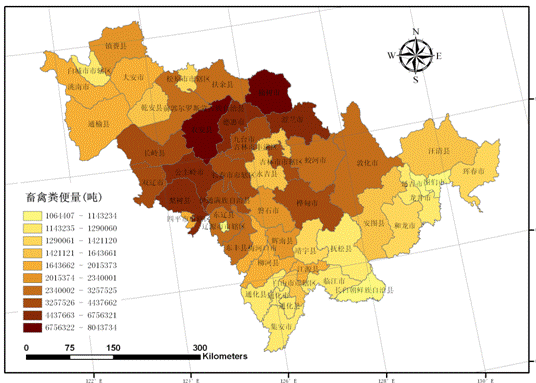 圖1.2-2吉林省畜禽糞便資源分布圖
