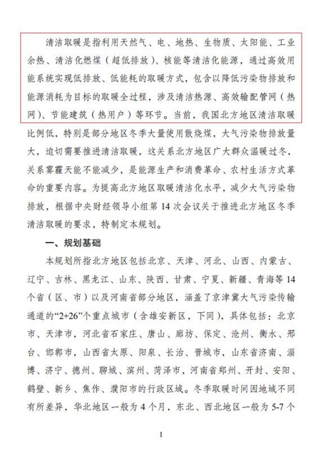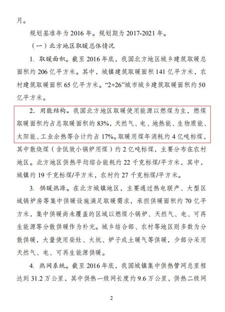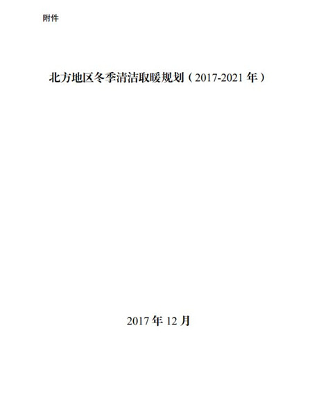 北方地區(qū)冬季清潔取暖規(guī)劃(2017-2021年)