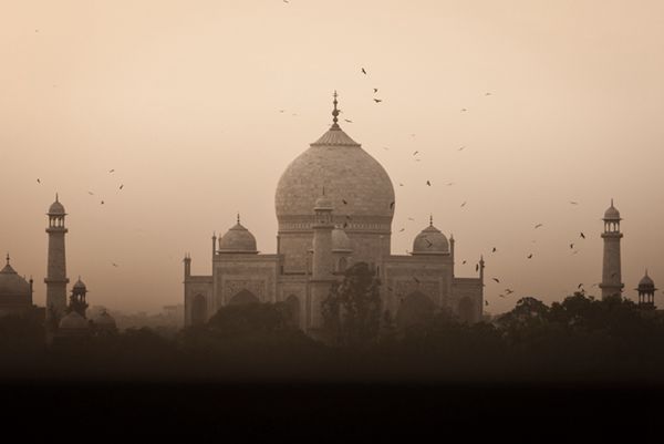 印度空氣污染非常嚴(yán)重,白色大理石建成的泰姬陵是印度著名古跡,也是世界遺產(chǎn),如今已被“染”得略帶土黃棕色