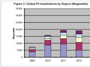 全球總體PV安裝容量將從今年的15769MW增長到30740MW,如圖3所示。目前PV安裝活動在14個國家和地區(qū)最為活躍,包括亞洲的中國、日本和韓國,北美的美國和加拿大安大略,歐洲的德國、意大利、西班牙、法國、英國、捷克、比利時、希臘和保加利亞。