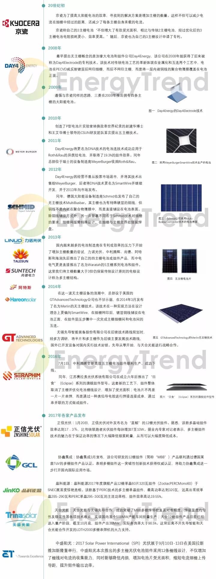 自2009年業(yè)內(nèi)逐漸導(dǎo)入三主柵開始,就一直在突破,從三主柵、四主柵和五主柵到如今的十二主柵,如何將產(chǎn)品做的實(shí)惠美觀又高效?各廠家為此挖空心思。根據(jù)網(wǎng)絡(luò)公開信息,小編整理了從20世紀(jì)初開始,國內(nèi)外太陽能電池片主柵技術(shù)的發(fā)展歷程,并盤點(diǎn)了2017年國內(nèi)各大廠家的相關(guān)產(chǎn)品發(fā)布情況。(如有疏漏,歡迎補(bǔ)充。)